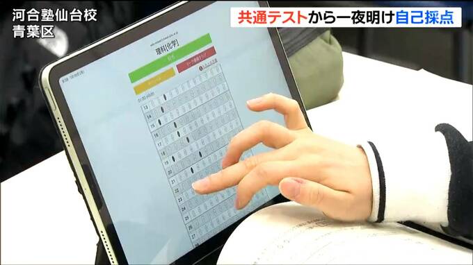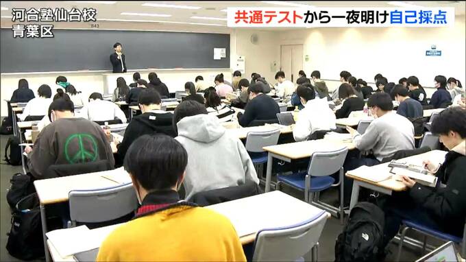 18日までの2日間の日程で行われた大学入学共通テストから一夜明け、仙台市内の予備校では受験生が自己採点に臨みました。
