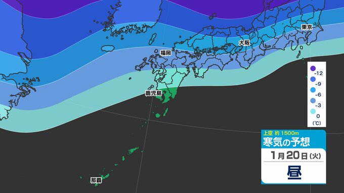 【”寒波”が来る】九州にも「雪」の予報「雪はいつ どこで」【雪シミュレーション20日(火)~24日(土) / 九州各都市の週間予報】福岡・佐賀・長崎・大分・熊本・宮崎・鹿児島 南日本放送 2026年1月19日(月) 12:05 国内 天気 寒気シミュレーション20日(火)~24日(土) 上空約1500mには、九州北部で「氷点下12℃」、九州南部で「氷点下9℃」の寒気が流れ込んできそうです。今シーズン一番の『寒気』が予想されています。 この記事をはじめから → 寒波が来る 九州も雪のおそれ「雪シミュレーション」