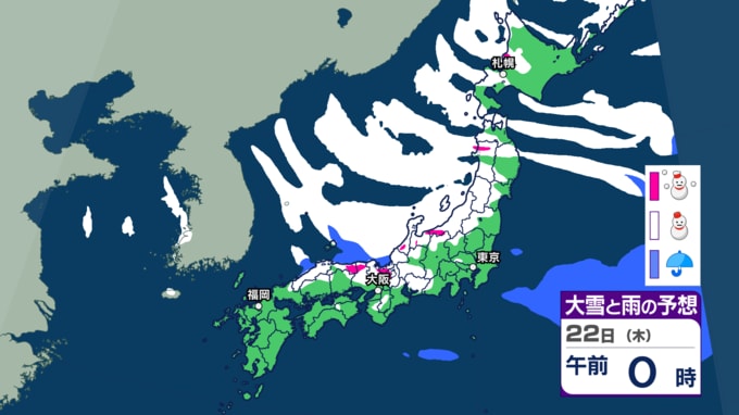 気象庁は19日、「大雪に関する全般気象情報」を発表しました。21日水曜日から25日日曜日にかけて、日本付近は強い冬型の気圧配置となり、北日本から西日本の日本海側を中心に「警報級の大雪」となるおそれがあります。