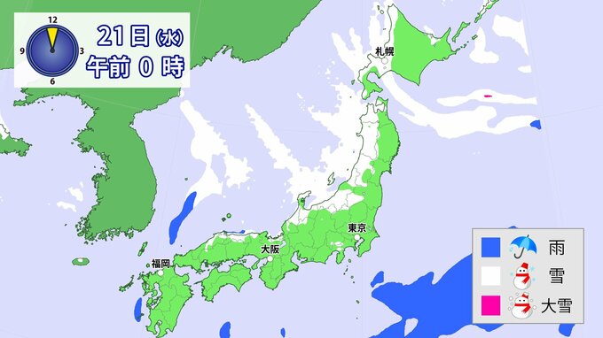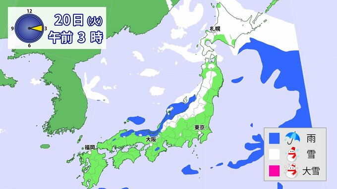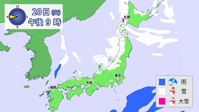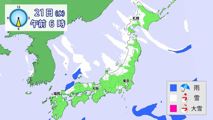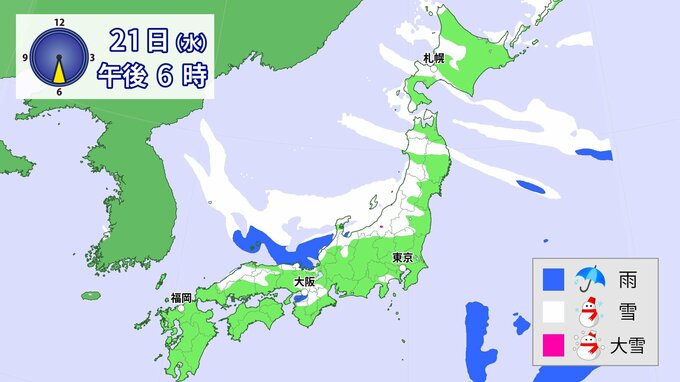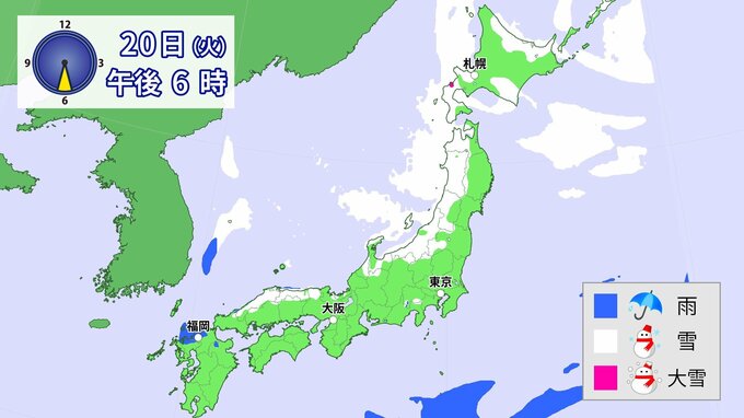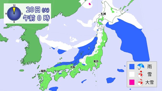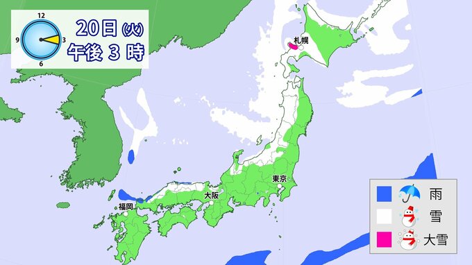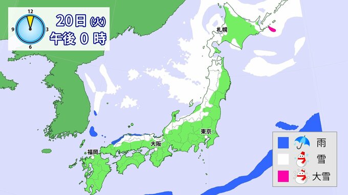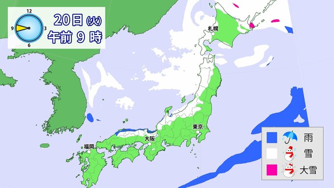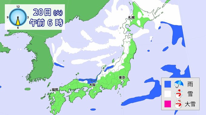 20日(火)以降、日本海側を中心に、山地だけではなく平地でも大雪となる所があるでしょう。