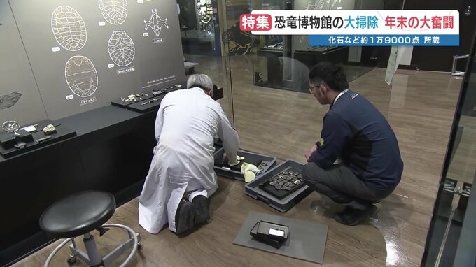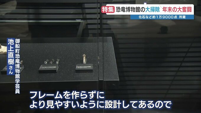 御船町恐竜博物館 学芸員 池上直樹さん「フレームを作らず、より見やすいように設計してあるので、細かいほこりが中に入ってしまう」