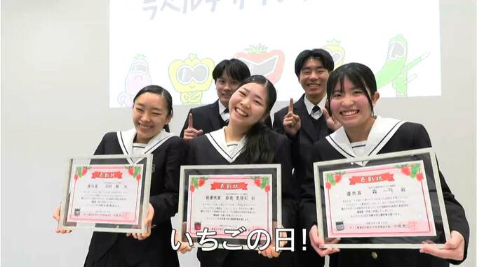 最優秀賞にはイチゴの魅力が伝わるように背景を赤色にした、ビジネス情報科3年の桑島愛理彩さんの作品が選ばれました。