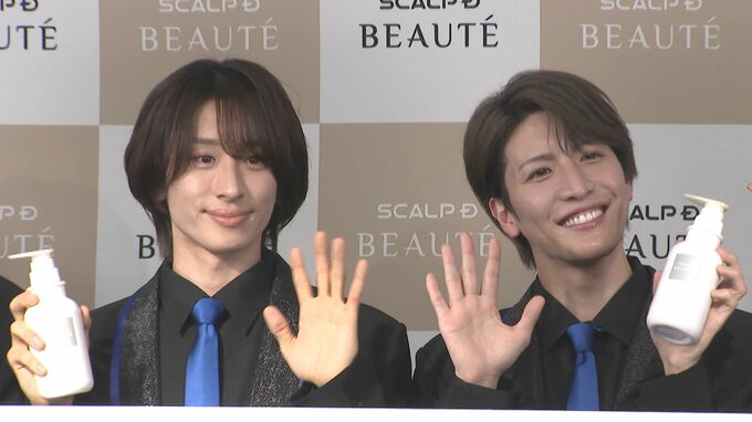 〝メンバーの中でも髪の毛が長かったりするし、カラーもしているんですけど、この商品のお陰もあってファンの皆様に「きょうも髪の毛サラサラだね」って言っていただけるんです。ストレートのヘアスタイルの時は照明のライトが当たって「天使の輪っか」が出来るんですよ僕。だから僕「天使」って呼ばれてます〟と得意げな表情。すかさず松岡さんから〝中身は悪魔なんですけどね〟と突っ込みが入り、会場は笑いに包まれました。