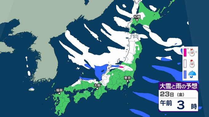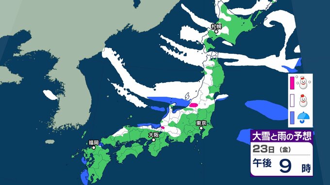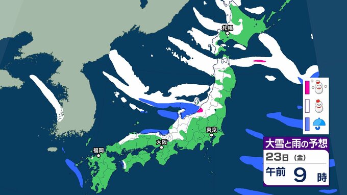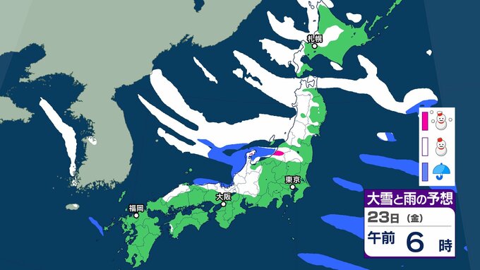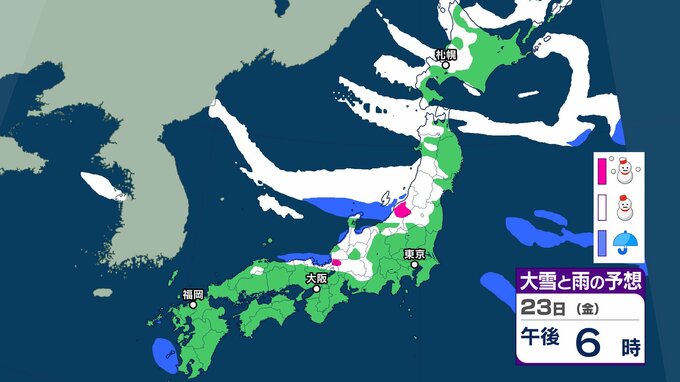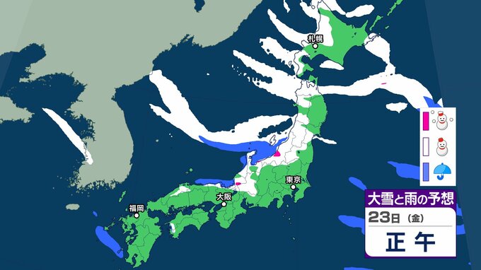 【雪の予想】今後冬型の気圧配置が強まる見込み→北~西日本の日本海側を中心に21日(水)は大雪による交通障害に注意・警戒を【気象庁 19日(月)~24日(土)の雪雨シミュレーション/19日午後5時更新】 RSK山陽放送 2026年1月19日(月) 17:00 国内 天気 23日(金) 気象庁の雪と雨のシミュレーションによりますと、23日は、東北や北陸、山陰などの日本海側を中心に雪が降る予報となっています。