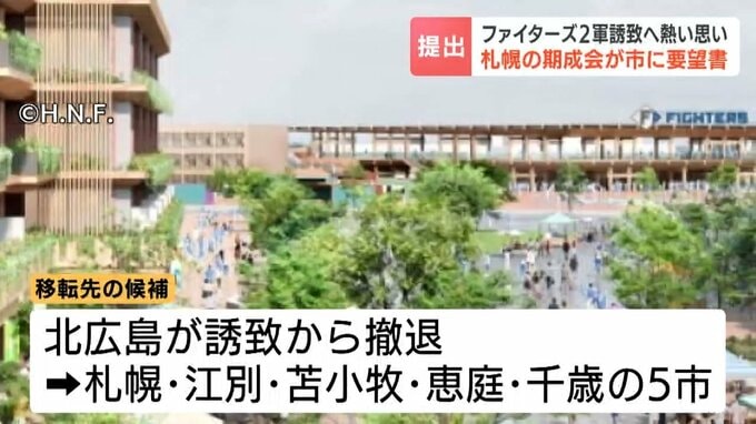 北海道日本ハムファイターズの2軍施設の候補地決定まで半年を切る中、札幌の期成会が、札幌市に要望書と署名を提出しました。