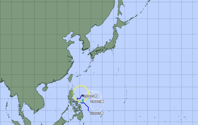 進行方向、速さ 東南東 15 km/h (8 kt)