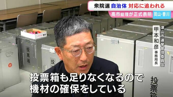 高市総理は、23日に召集される通常国会の冒頭で衆議院を解散する意向を表明しました。今月27日に公示、来月8日に投開票という異例の短期決戦となる、今回の衆院選。岡山・香川の自治体も準備に追われています。