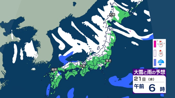 【大雪情報】一体どうなる? “10年に一度レベル”の大雪の恐れある20日、21日頃の天気 北⽇本~⻄⽇本の⽇本海側を中⼼に⼤雪か 「大雪・雨・風のシミュレーション」で見る最新の予想は?	|TBS NEWS DIG