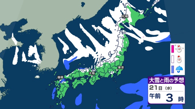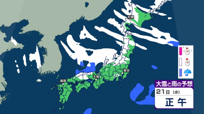 【日本全国が真っ青】21日以降、北~西日本の日本海側で大雪か 全国各地が『かなりの低温』北海道、東北、関東甲信、北陸、東海、近畿、中国、四国、九州、沖縄【気象庁・早期天候情報】20日9時更新|TBS NEWS DIG
