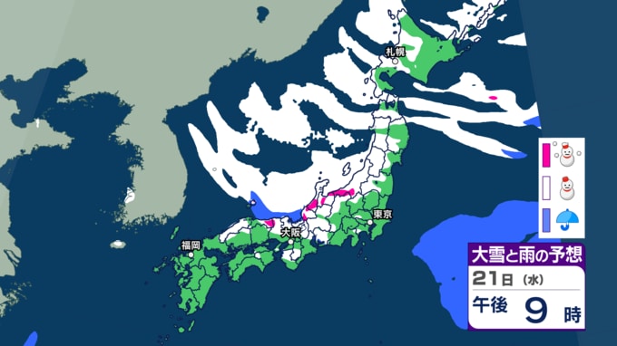 【日本全国が真っ青】21日以降、北~西日本の日本海側で大雪か 全国各地が『かなり…