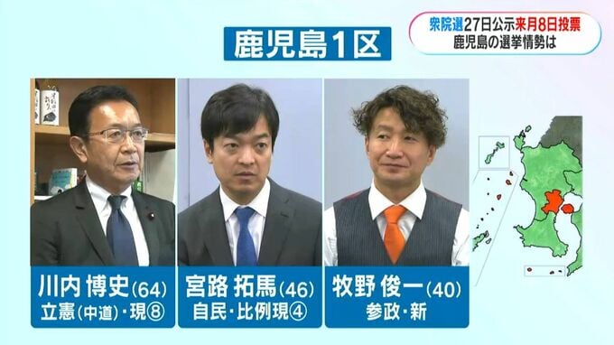 鹿児島1区では、立憲民主党現職の川内博史さんが離党して、新党「中道改革連合」からの立候補を予定しています。