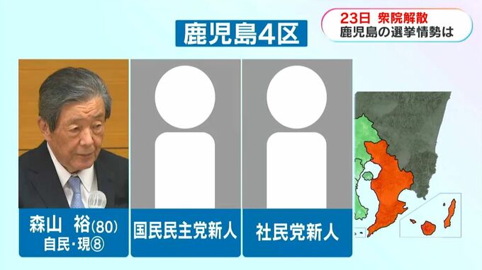 自民党現職の森山裕さんが9期目の当選を目指して立候補を予定しています。また、国民民主党が県外で暮らす大隅半島出身の男性、社民党が新人の擁立を予定しています。