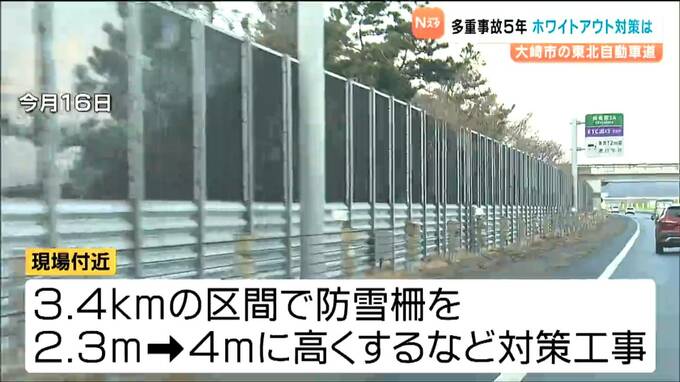 発生から5年。東北自動車道の現場付近では、「ホワイトアウト」による事故を防止するために3.4㎞の区間で防雪柵を2.3mルから4mに高くするなどの対策工事が施されてきました。