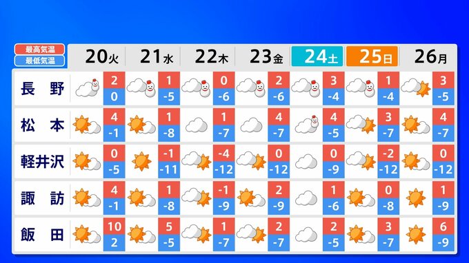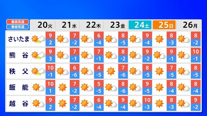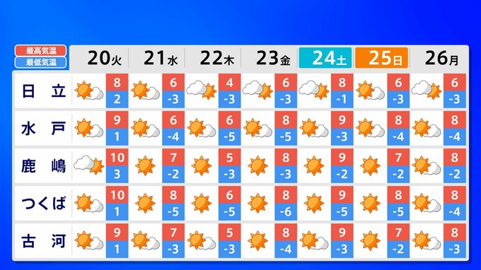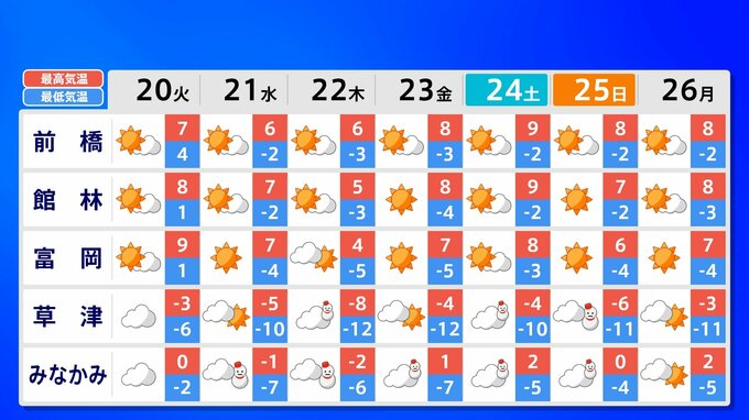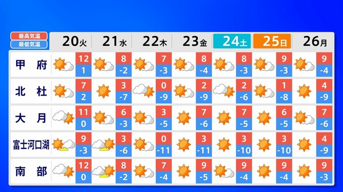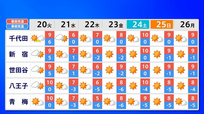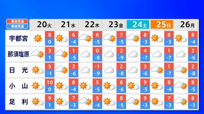 関東甲信地方 各都市の週間予報(20日(火)~ 26日(月))