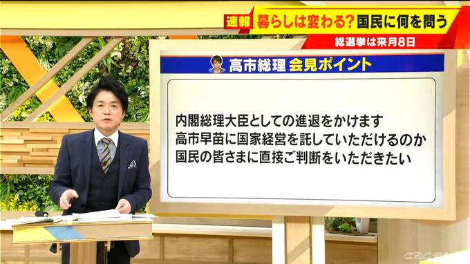 きょうの会見冒頭で「内閣総理大臣としての進退をかけます」と、ここまで言いました。「高市総理に国家経営を託していただけるのか、国民の皆さんに直接ご判断をいただきたい」と締めたんですね。