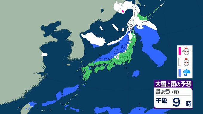 【大雪情報】21~25日ごろにかけ大雪のおそれ 北陸では最大100センチ 東北・近畿では70センチ予想 交通障害などに警戒を 全国の3時間ごとの雪のシミュレーション(気象庁) テレビ山口 2026年1月19日(月) 20:07 国内 きょう(19日)の雨と雪のシミュレーション