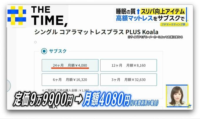 定価で購入すると9万9000円ですが、サブスクなら月額4080円(2年間利用の場合)から。(※サイズやモデル・メーカーによって金額は異なります)