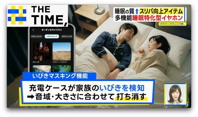 他にも、充電ケースが家族のいびきを検知すると、その音域や大きさに合わせ“いびきを打ち消してくれる”機能もついています。