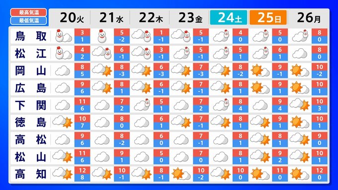 【大雪情報】北~西日本の日本海側中心に大雪か 21日~25日頃にかけ強い冬型の気圧配置 北海道 東北 関東甲信 北陸 近畿 四国・九州でも雪の所も【気象庁・大雪に関する全般気象情報】 あいテレビ 2026年1月19日(月) 22:41 国内 ▼雪のシミュレーションはこちら