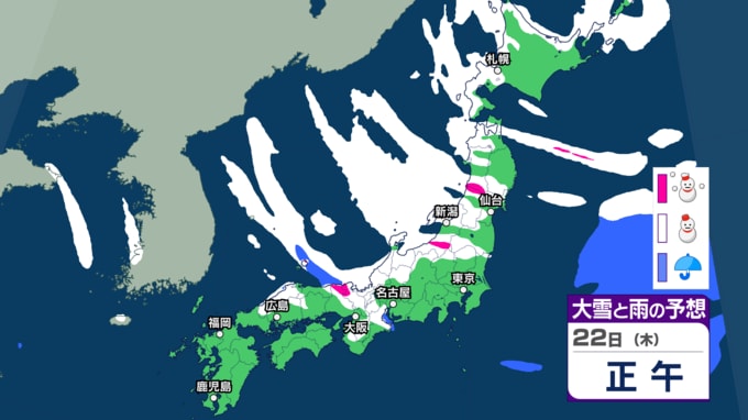 【大雪情報】北~西日本の日本海側中心に大雪か 21日~25日頃にかけ強い冬型の気圧配置 北海道 東北 関東甲信 北陸 近畿 四国・九州でも雪の所も【気象庁・大雪に関する全般気象情報】 あいテレビ 2026年1月19日(月) 22:41 国内 ▼全国の週間天気予報はこちら