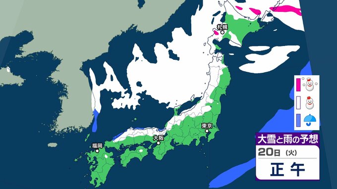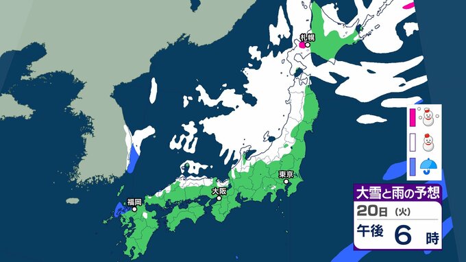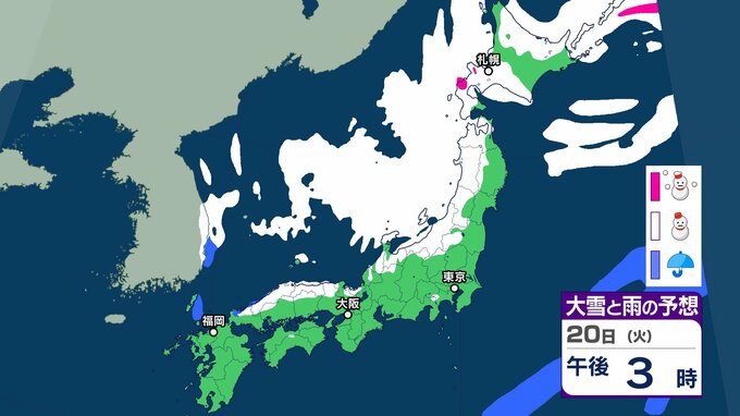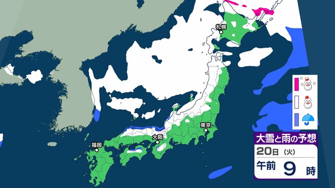 また、上空寒気と低気圧周辺の下層暖湿気の影響で大気の状態が不安定となる所があり、北海道地方では、20日は猛ふぶきや吹きだまりによる交通障害、高波に警戒し、21日 にかけて大雪による交通障害に注意・警戒。着雪やなだれ、落雷、突風に注意が必要です。