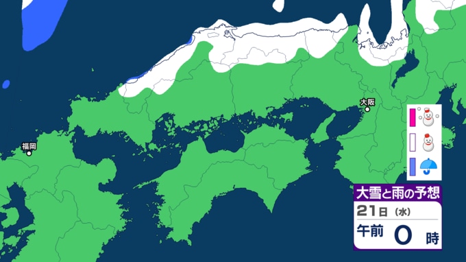 【雪の予報】「居座り寒波」で中国地方はどうなる? 21日(水)日本海に「JPCZ」形成へ、局地的に降雪が強まるおそれ 22日(木)にかけて「警報級の大雪」のおそれ 島根・鳥取・山口・広島・岡山の天気予報【気象庁 雪雨シミュレーション】 2時間前