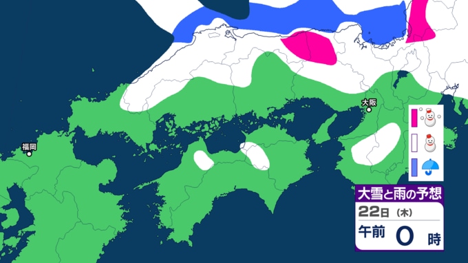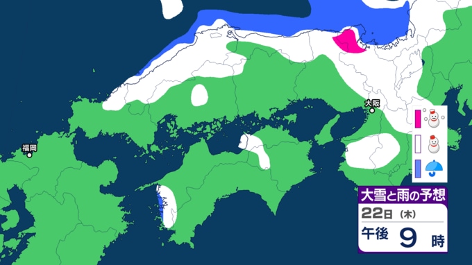 【雪の予報】「居座り寒波」で中国地方はどうなる? 21日(水)日本海に「JPCZ」形成へ、局地的に降雪が強まるおそれ 22日(木)にかけて「警報級の大雪」のおそれ 島根・鳥取・山口・広島・岡山の天気予報【気象庁 雪雨シミュレーション】 RSK山陽放送 2026年1月20日(火) 17:00 国内 天気 22日(木) 気象庁によりますと、中国地方の降雪量は多い所で22日(木)12時までの24時間で70センチが予想されているということです。