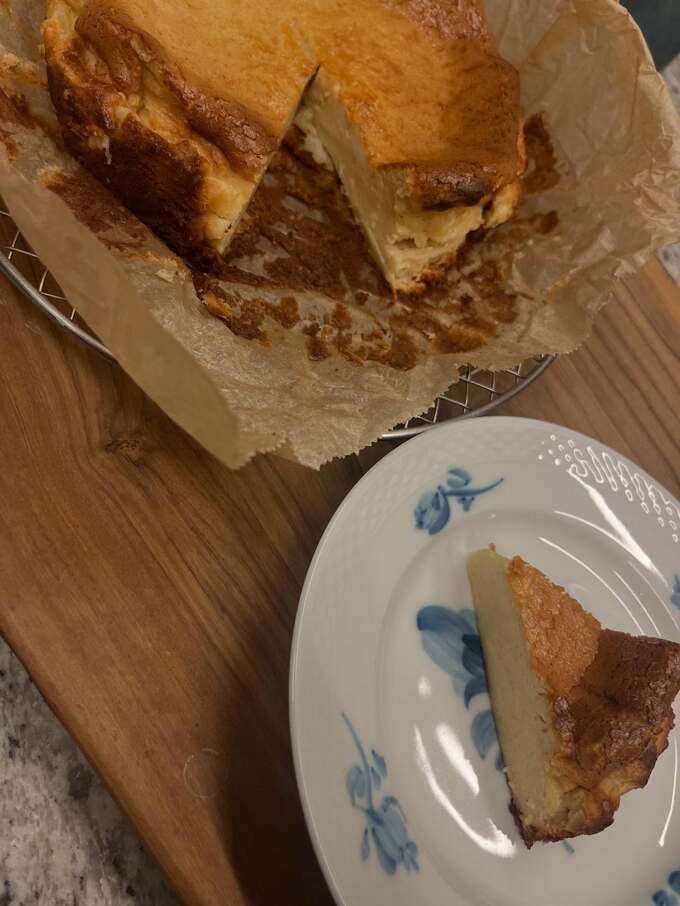 ヨーグルトとかに代用してない ノーマルチーズケーキ。」と、自身で作ったチーズケーキを紹介しました。