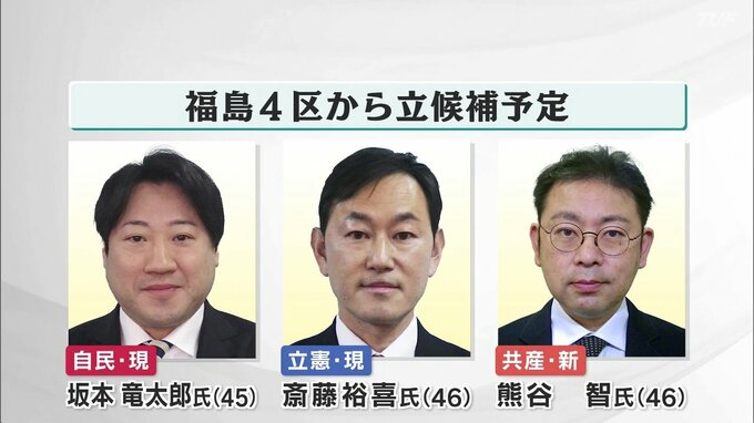 福島4区ではこのほかに、自民党の現職・坂本竜太郎さん、立憲民主党の現職・斎藤裕喜さん、共産党の新人・熊谷智さんが立候補を予定しています。