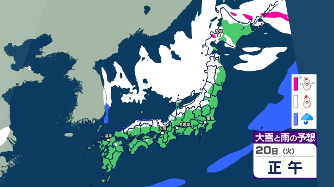 北日本から西日本では日本海側を中心に、山沿いや山地だけではなく、平地でも大雪となる所があり、短時間に降雪が強まるおそれがあります。また、普段雪の少ない太平洋側でも大雪となる所がある見込みです。