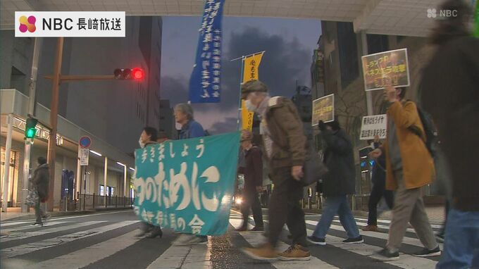 アメリカの原子力空母「エンタープライズ」が国内で初めて佐世保に入港した58年前から続く市民の平和行進が19日夜も行われました。