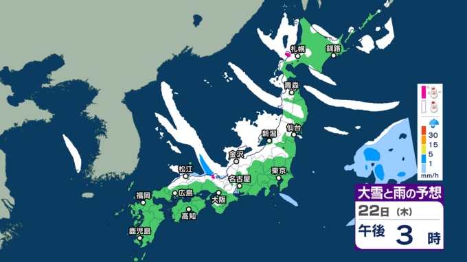 その後も25日頃にかけて、強い冬型の気圧配置が続くため、北日本から西日本の日本海側を中心に大雪が続き、積雪がさらに増えるおそれがあります。