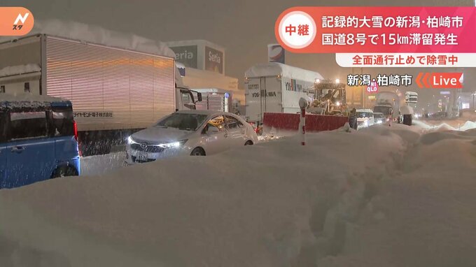 国土交通省によりますと、記録的な大雪となっている新潟県柏崎市では、国道8号でおよそ15キロにわたる車両の滞留が発生しました。国土交通省は、緊急車両の通行を確保するため、一部の区間を災害対策基本法に基づ…