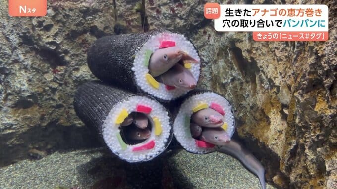 節分を前に仙台市では「アナゴの恵方巻」が話題になっています。その驚きの見た目とは…■水族館の節分は生きている「アナゴの恵方巻」!?仙台市にある「仙台うみの杜水族館」。三陸の海を再現した大水槽には、サメ…