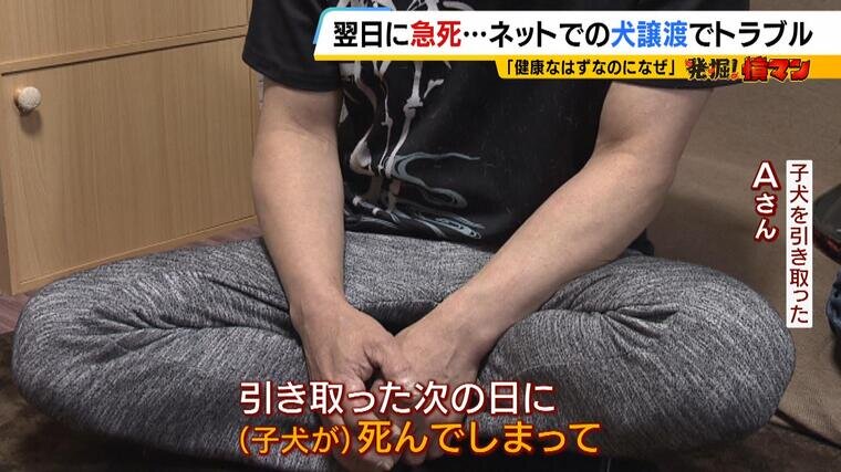 引き取った子犬が翌日に急死「怒り心頭、助けてあげられずごめん」 ネット譲渡めぐりトラブル..."健康"のはずが重度の肺炎と診断 譲渡女性を直撃すると「病院ではなく自分で検査した」 毎日放送 2026年1月24日(土) 06:00 国内 なぜ…「引き取った次の日に死んでしまった」 「20時間足らずでしたが、1枚(写真を)奇跡的に撮っていて」 「助けてあげられなくて『ごめんなさい』ですよね」 悲しみに暮れる2人。大阪市内に住む50代のAさん夫婦です。 去年10月、生後2か月の子犬をある人物から引き取ったと言います。ところが… (Aさん)「引き取った次の日に(子犬が)死んでしまって。気持ち的には本当に怒り心頭で」 引き取った翌日に子犬が突然、死んでしまったというのです。一体、何があったのでしょうか。