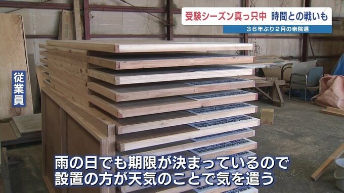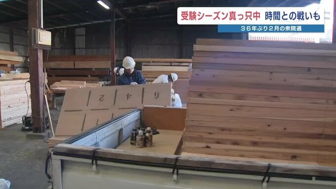記者「戦後最短の日程となった今回の衆議院選挙。ポスターの掲示板を作る会社では、急ピッチで作業が進められています」