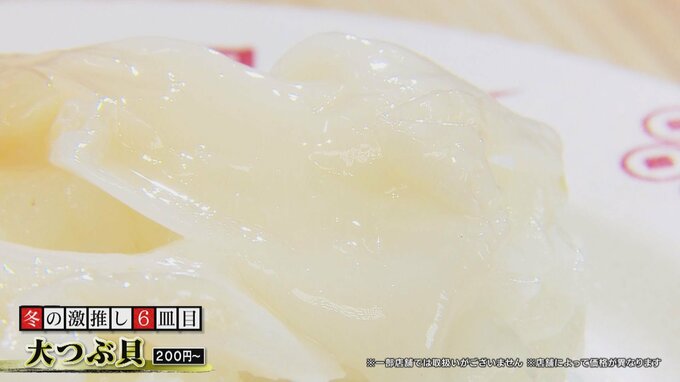 ほかに、加藤さんオススメの一皿は「大つぶ貝」(200円〜)。甘くて食感が楽しめる逸品です。また、米川さんのオススメは、冬限定「活〆寒ぶり」(160円〜)。※販売数には限りがあります。「皮付きのまま店に運ぶので、おいしさが逃げない」とのこと。とろける脂がたまりません。