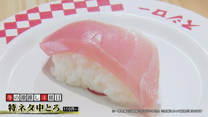 「特ネタ中とろ」は、通常180円~のところ、期間限定で今だけなんと110円~!(※1月25日まで)赤身とトロのグラデーションが美しく、「おいしいまぐろは、口に入れた瞬間に香る」と米川さんは言います。