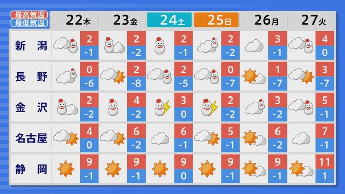 冬型の気圧配置や強烈な寒波は若干の強弱の違いはありながらも、数日にわたって続く見込み