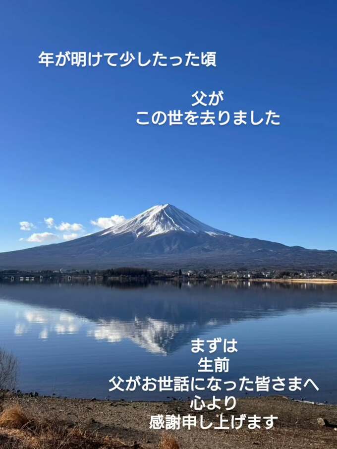富永さんは投稿で「年が明けて少しした頃 父がこの世を去りました まずは 生前 父がお世話になった皆さまへ 心より 感謝申し上げます」と綴っています。