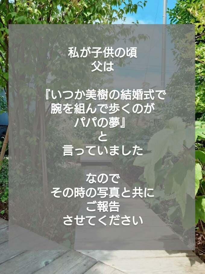 投稿には、1998年の自身の結婚式で父と腕を組んだ写真を添え、「私が子供の頃、父は『いつか美樹の結婚式で腕を組んで歩くのがパパの夢』と言っていました」と回想。「55年間、お父さんの娘でいられて幸せでした」「父のことを誇りに思い、強く強く生きていくね」と、亡き父への深い愛と決意を綴っています。