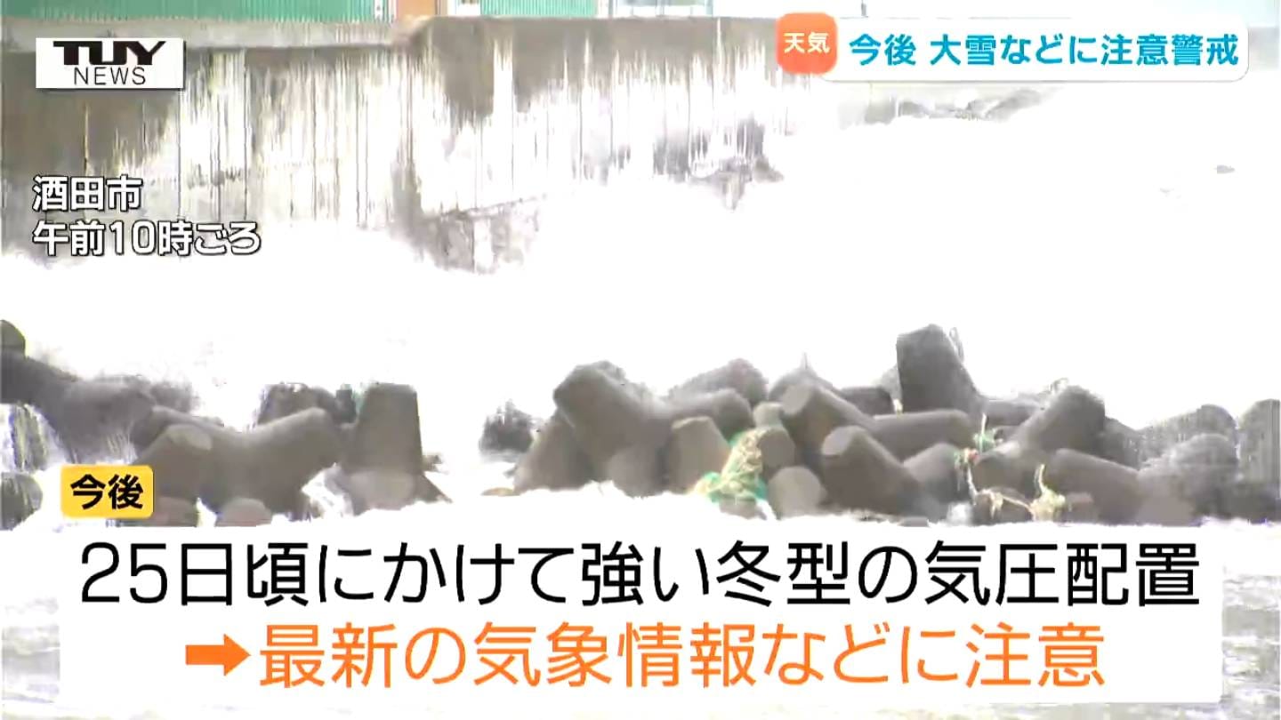 気象台は、また庄内や最上では風雪に、村山、置賜、最上では大雪やなだれ、電線等への着雪に注意するよう呼びかけています。