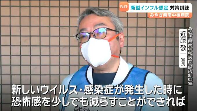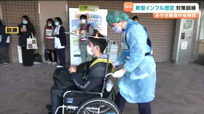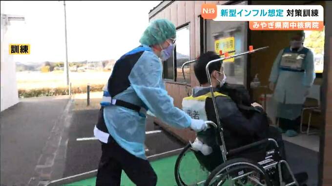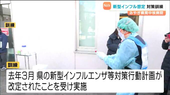 新型インフルエンザなど新たな感染症の発生を想定した対策訓練が、20日に宮城県大河原町にあるみやぎ県南中核病院で行われました。
