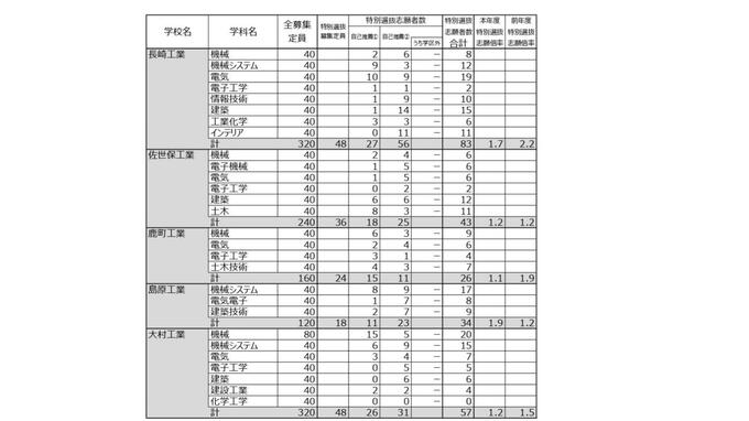 【長崎工業・佐世保工業・鹿町工業・島原工業・大村工業】