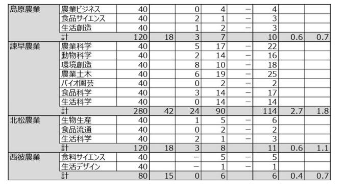【全校掲載】長崎県公立高校入試「特別選抜」志願倍率 佐世保北が3.1倍でトップ、諫早3.0倍、諫早農業2.7、長崎西1.5倍、長崎東は定員割れ 平均倍率は1.26倍 長崎放送 2026年1月20日(火) 21:33 国内 【島原農業・諫早農業・北松農業・西彼農業】 ▶島原農業:0.6倍(前年度 0.7倍) ▶諫早農業:2.7倍(前年度 1.8倍) ▶北松農業:0.6倍(前年度 1.1倍) ▶西彼農業:0.4倍(前年度 0.7倍)