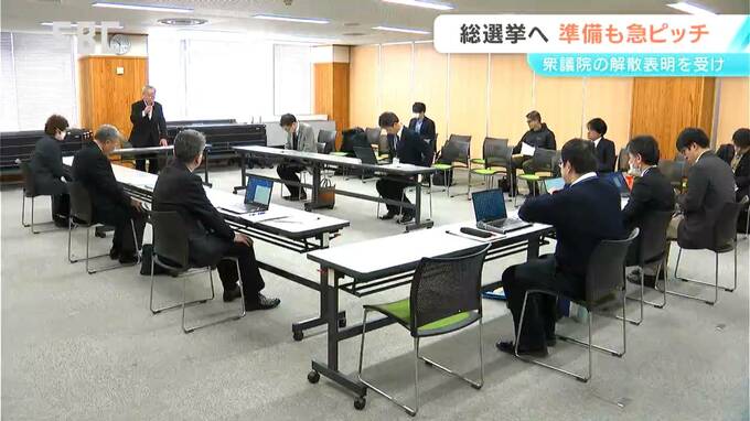 これを受け、20日に開かれた臨時の県選挙管理委員会。今後のスケジュールや投票用紙の様式などを確認しました。今回の総選挙は超短期決戦となることから、のぼり旗などの備品の準備が間に合うか心配されています。