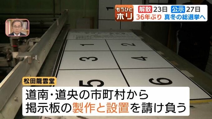 「森町のこちらの看板店では、選挙で使う掲示板の印刷作業が行われています」