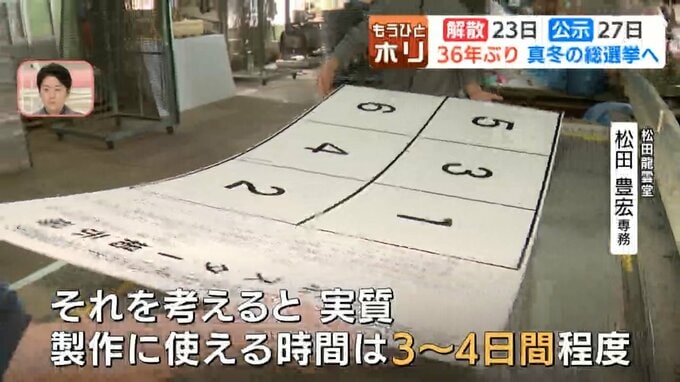 「(選挙期間が)特に短い。過去に例を見ないと思う。それを考えると実質、製作に使える時間は3~4日間程度。通常の3倍強を増員している」