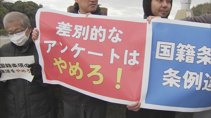 これに対し、アンケートそのものが差別にあたるとして、愛知県立大学で在日朝鮮人の生活史などを研究する山本かほり教授らのグループが、アンケートの中止を求める抗議活動を行いました。
