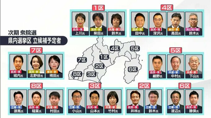 激戦必至の選挙区 静岡県内の顔ぶれは